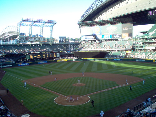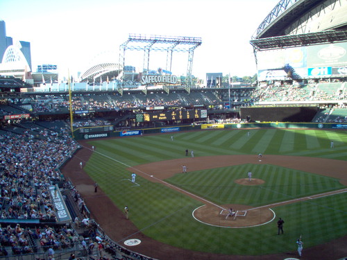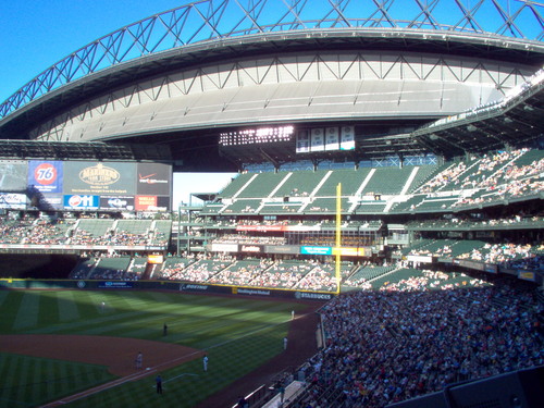 Looking down the right field line withe the roof open.