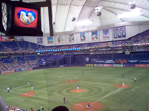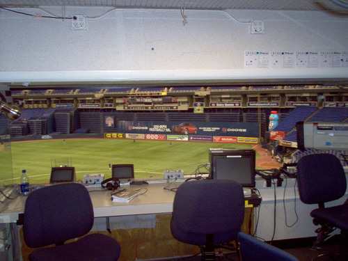 A view from the booth at the Metrodome. It feels like you are doing the game from a submarine.
